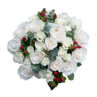 Winter Elegance: Enchanting Your Cold-Weather Wedding with White Roses, Gypsophila, Eucalyptus, and Hydrangeas