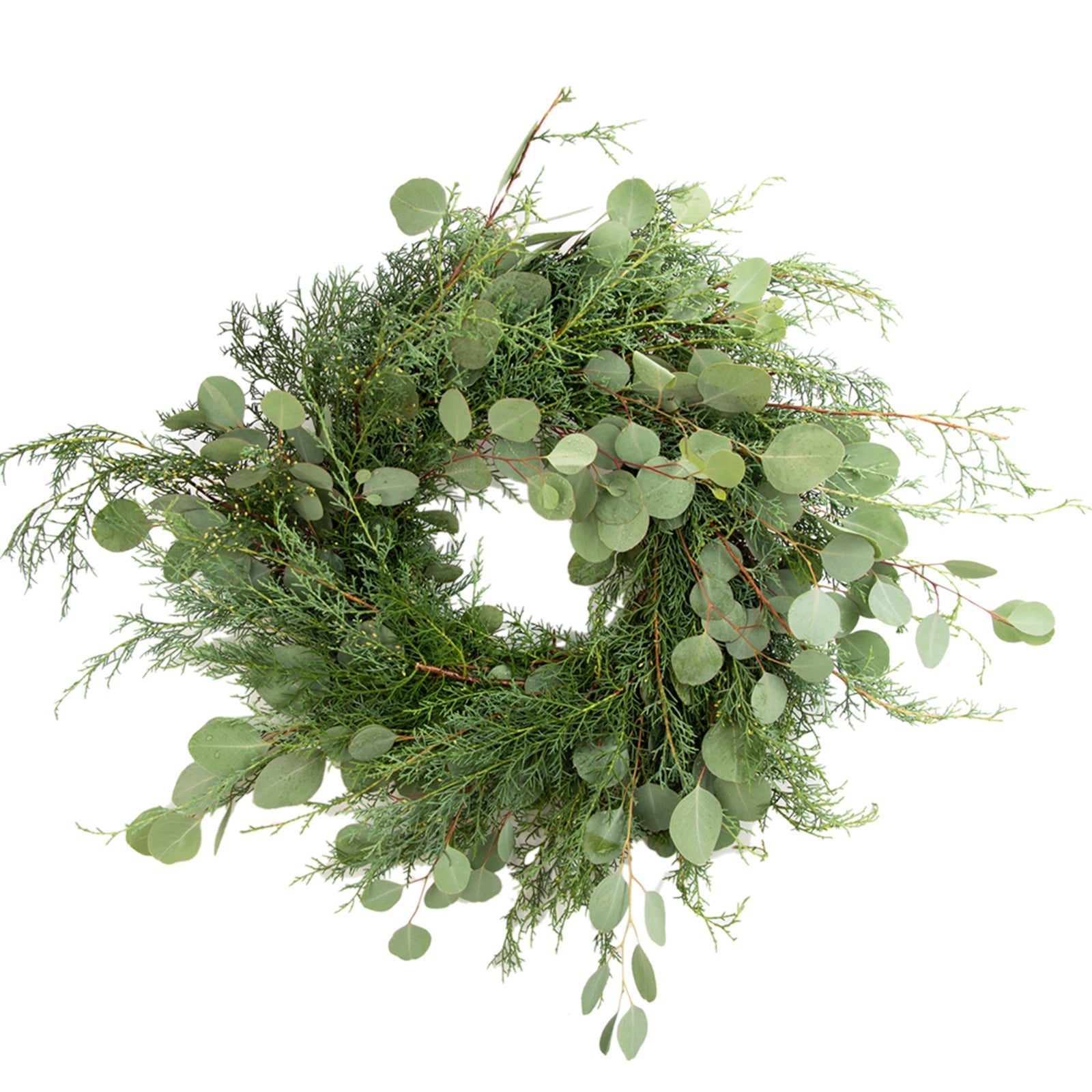 Have a very merry decor with this beautiful wreath. This gorgeous wreath contains Carolina Sapphire and Silver Dollar. It's perfect to add Christmas colors to your Holiday decor.