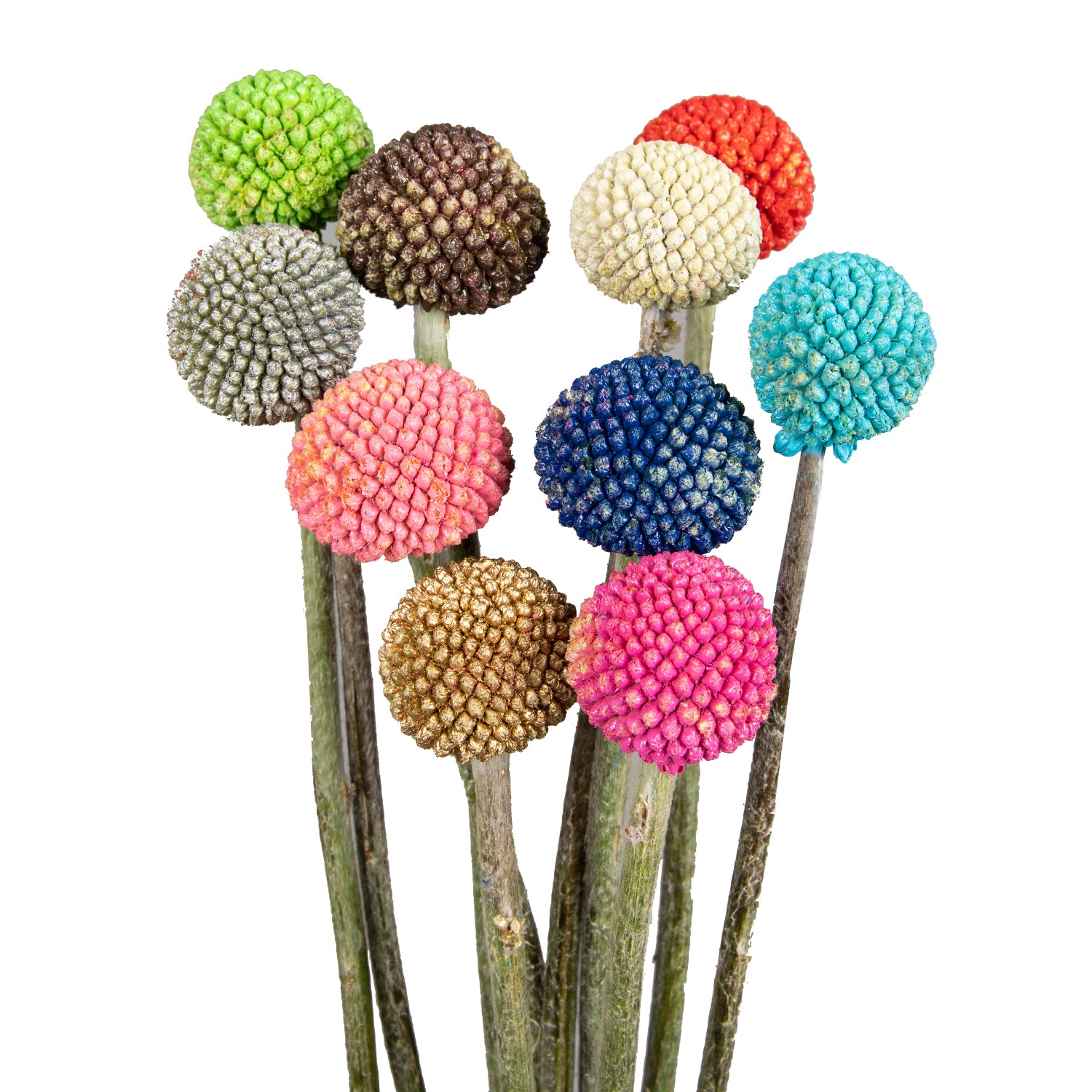 Craspedia (also known as Billy Balls, Billy Buttons, and Wollyheads) are great if youâ d like to add shape and color to any arrangement, centerpiece, or bouquet. These globe-shaped flowers belong to the daisy flower family and have very sturdy stems which make them easy to cut and arrange. They are colorful and whimsical, and so easy to work with, which makes them fun to incorporate into any DIY project. They pair great with many focal flowers such as ranunculus, roses, hydrangeas, and Callas.