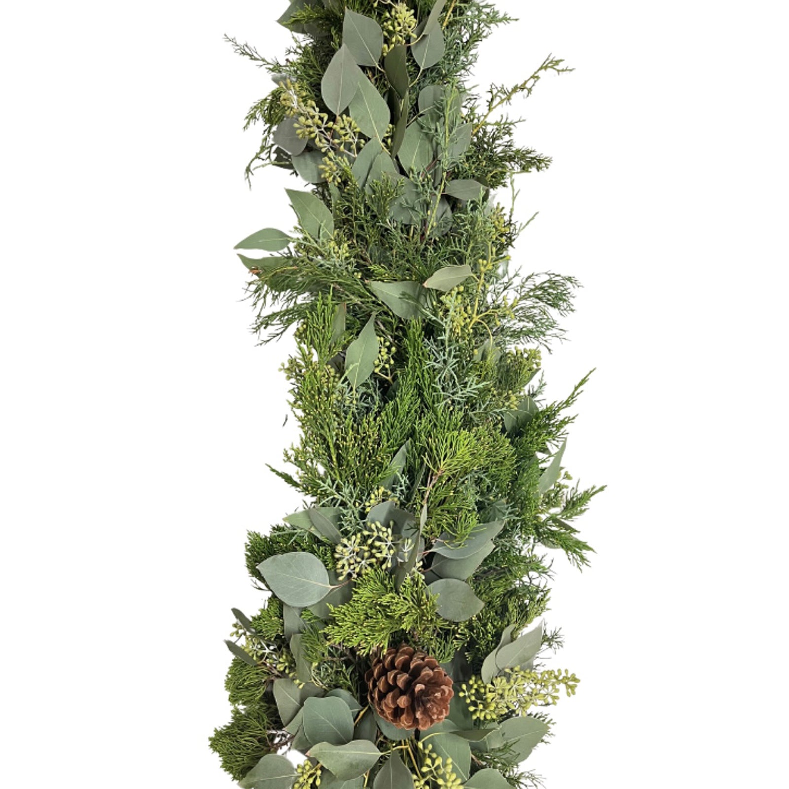 - Each garland includes Seeded Eucalyptus, Cedar, Silver Dollar and Carolina Sapphire