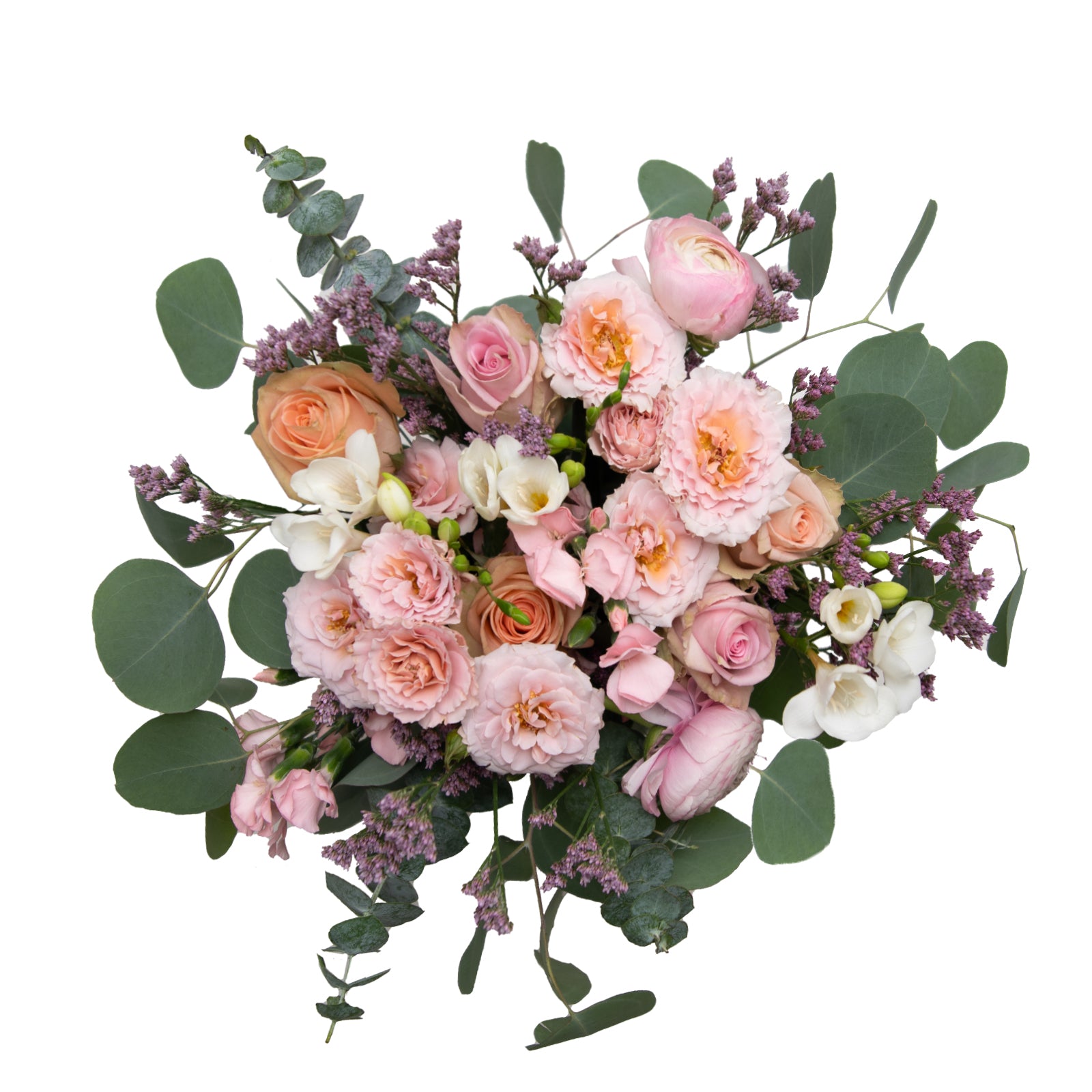 This exquisite bouquet blends the delicacy of Tiffany roses with the aromatic freshness of eucalyptus, creating a visual and olfactory harmony that captivates the senses. Perfect for expressing elegance and gratitude on any special occasion. This bouquet is always shopped directly to you and is guaranteed fresh.