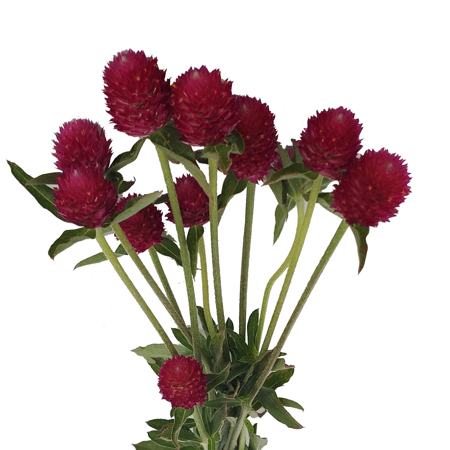 Gomphrena AKA the Bachelor Button can be used to create a wild garden look. Small rounded, globe-like blooms can be found on bendable stems which make for easy arranging. These compact, colorful, papery pom poms are long-lasting and can be used in fresh or dry arrangements making stunning bouquets and centerpieces.