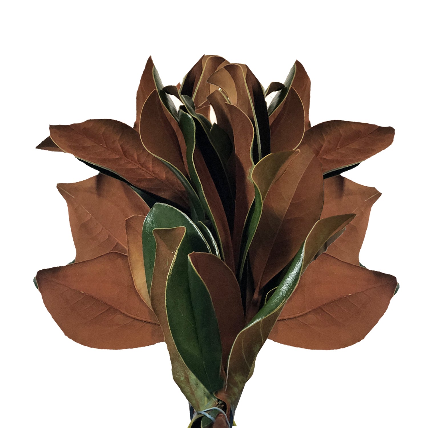 Magnolia is a perfect example of the unique beauty nature can provide. The intriguing colors of the large waxy reddish-brown-gold backside and shiny green leaf tops make this one of the most popular choices among DIY designers. Adding a lush texture to all your arrangements and centerpieces.