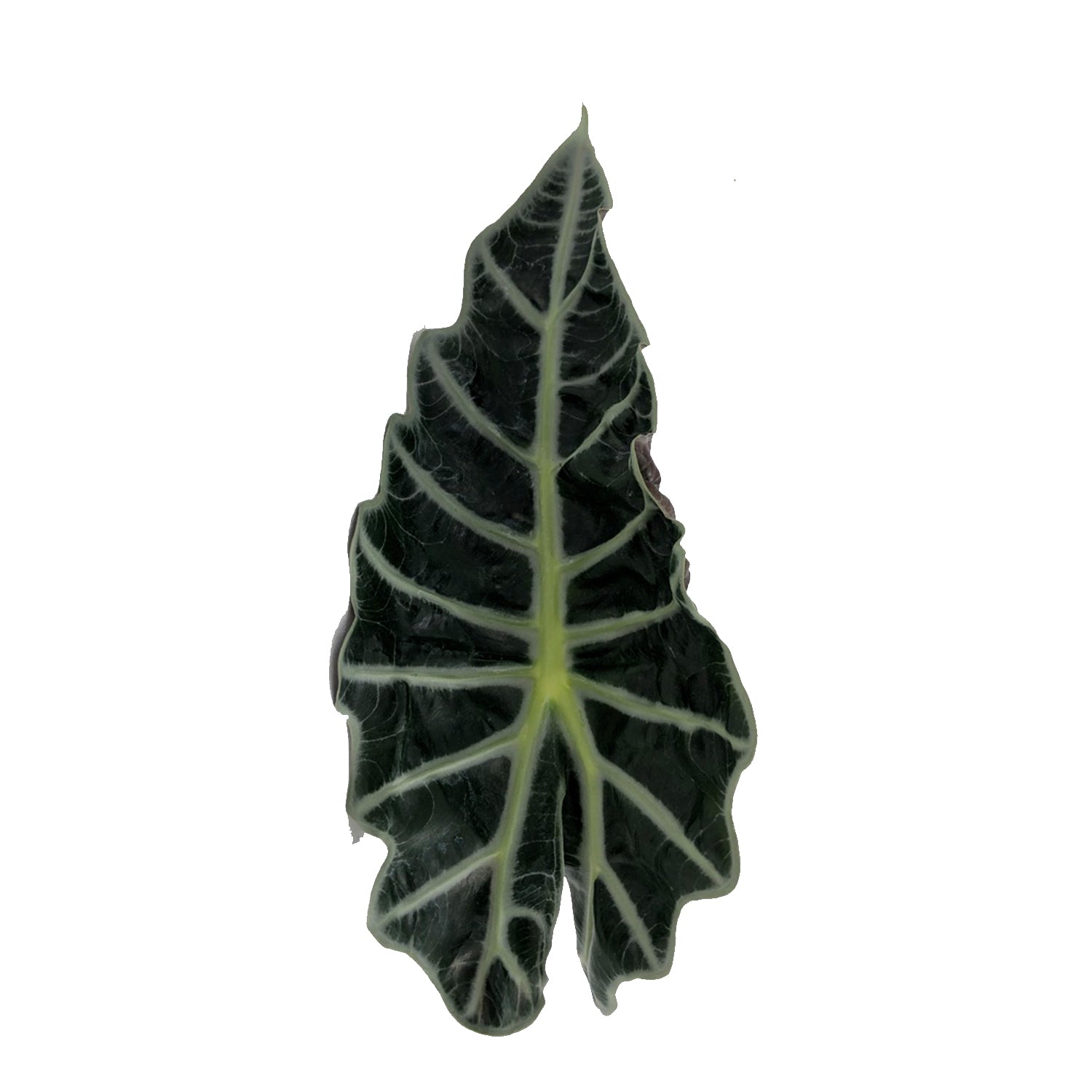 Complete your tropical atmosphere with the grand sweeping leaf of the Deer Face. Elephant Ear type leaf that is dark green hues with lime green following the spine of the leaf. Make your tropical theme decor burst with eye-popping arrangements.